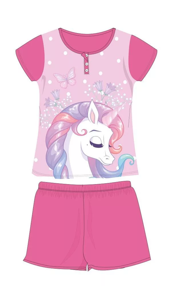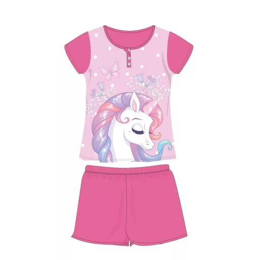Unikornis nyári rövid ujjú gyerek pizsama - pamut jersey pizsama - rózsaszín - 116