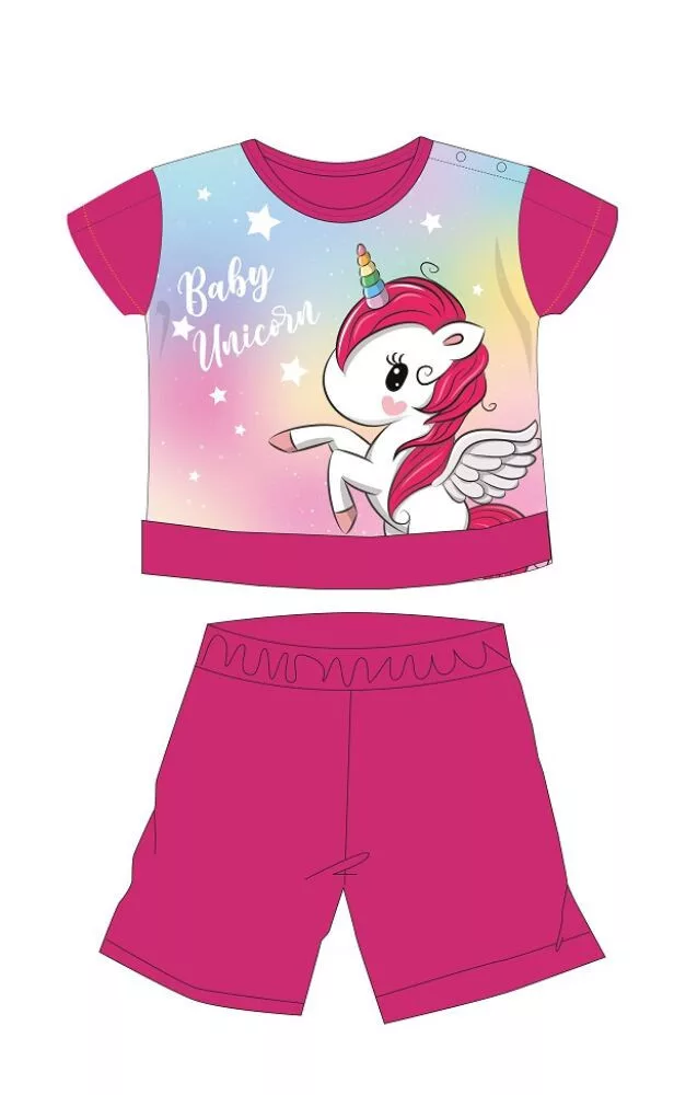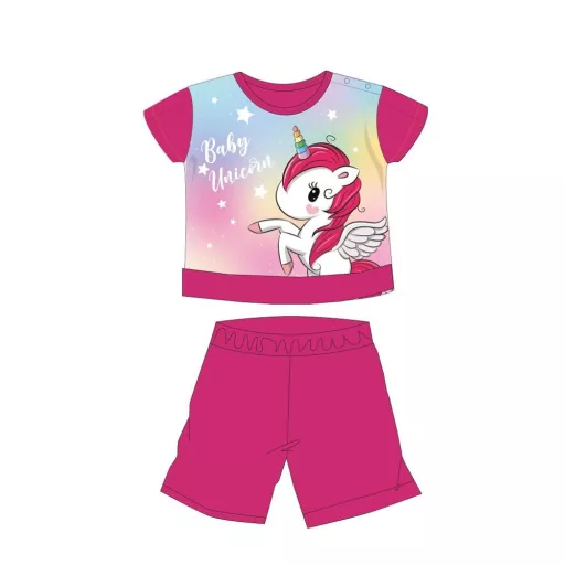 Unikornis nyári rövid ujjú baba pizsama - pamut jersey pizsama - pink - 86