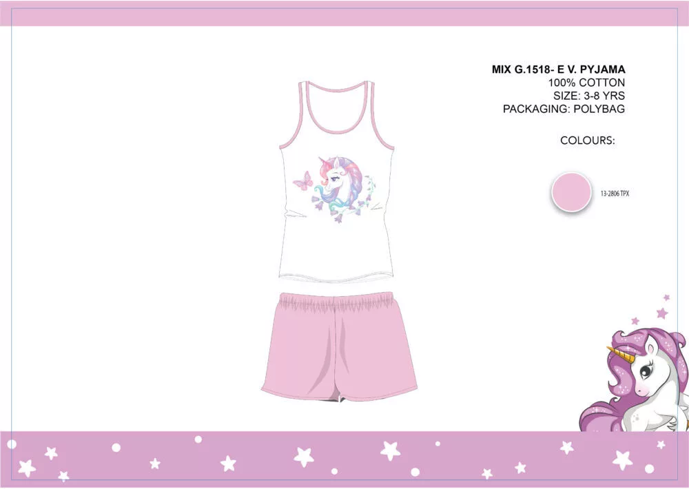Unikornis nyári ujjatlan gyerek pizsama - pamut pizsama - világosrózsaszín - 116